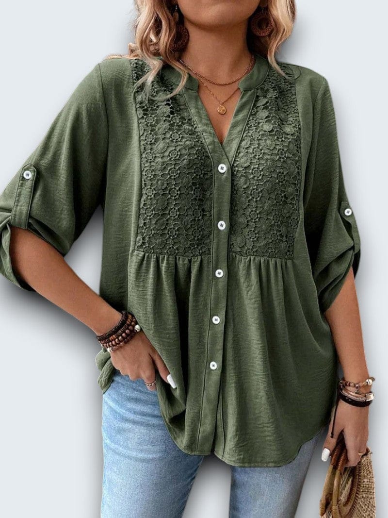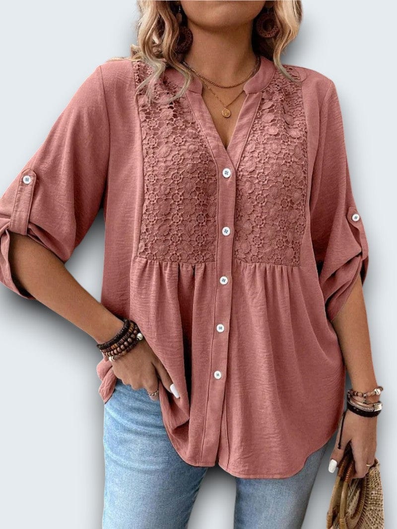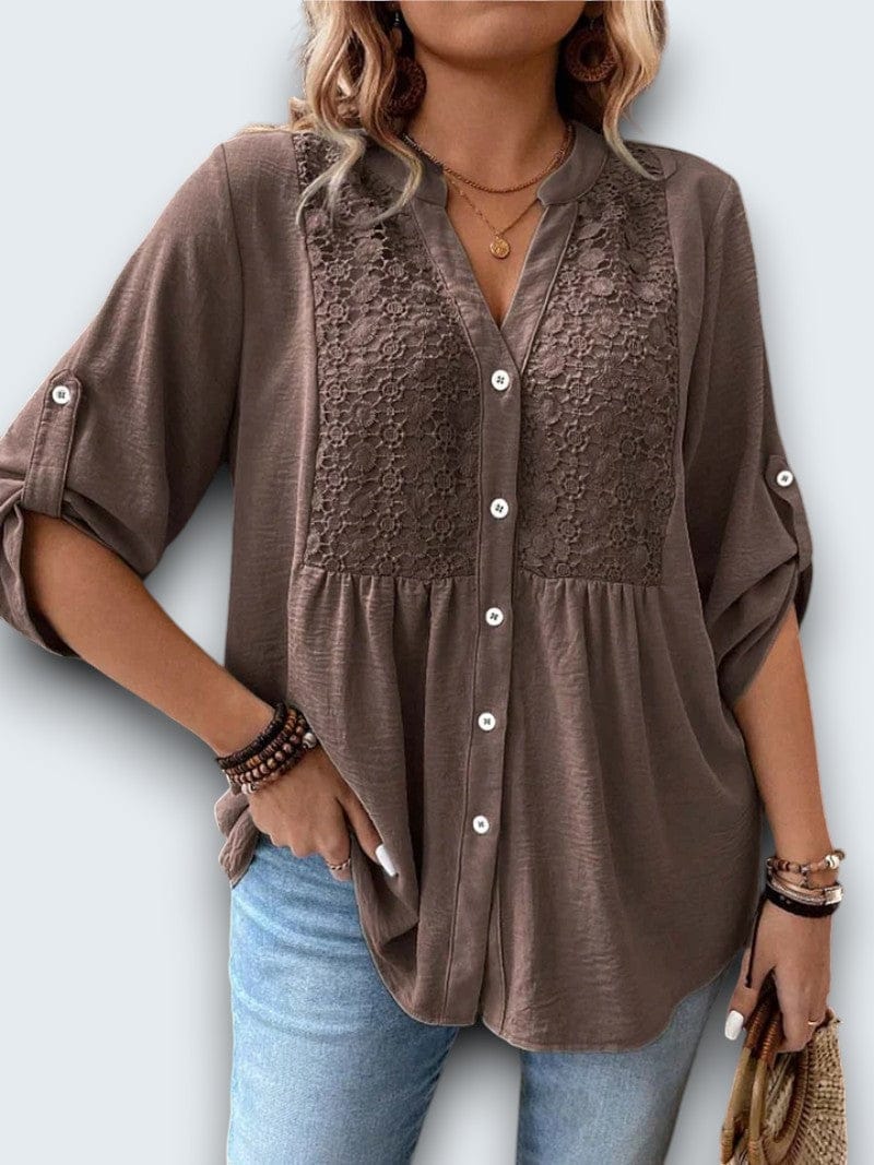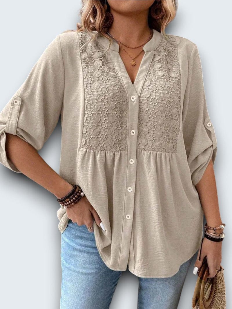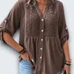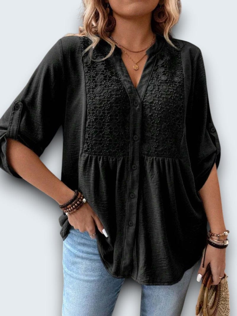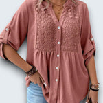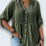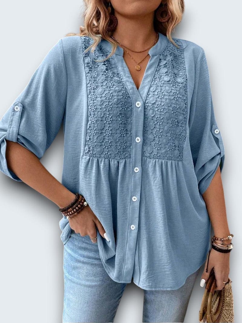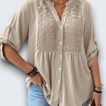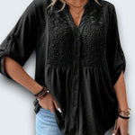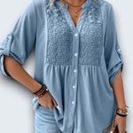 casual cotton blouse. Crafted from breathable premium cotton with intricate lace insets
