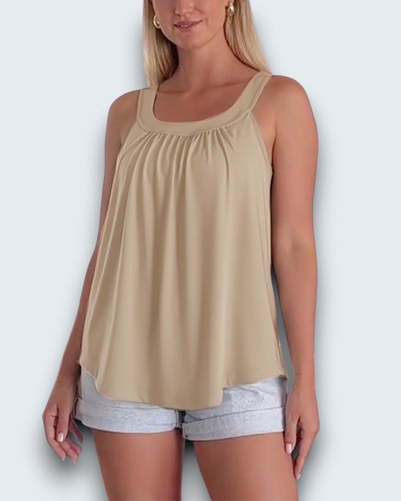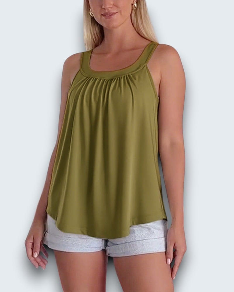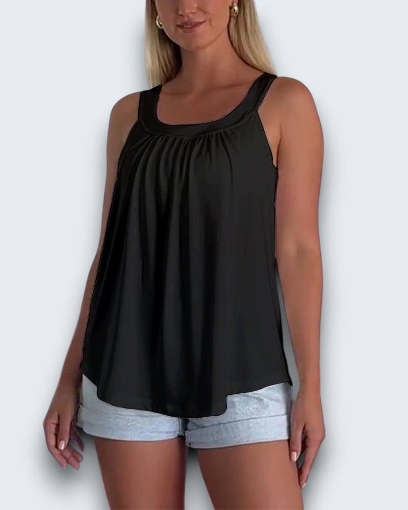 • Elegant Gathered Neckline — Flattering drape that moves with you, never stiff or structured