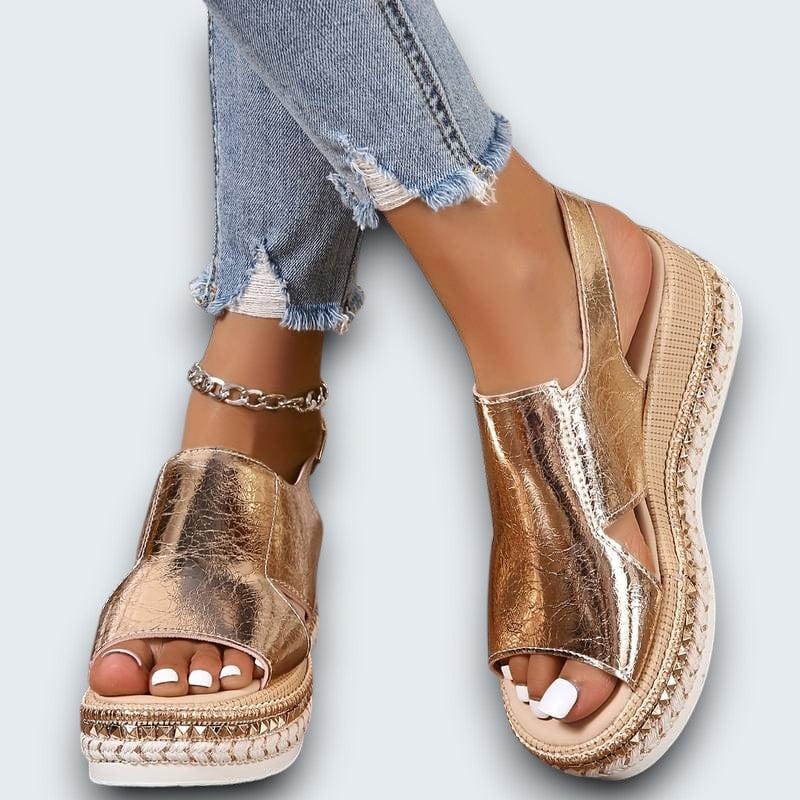 These sandals feature a contoured orthopedic sole that cradles your feet while adding a little lift and a shiny Star-like pattern. Whether you're strolling the city streets or dancing under the stars, every step feels effortless.